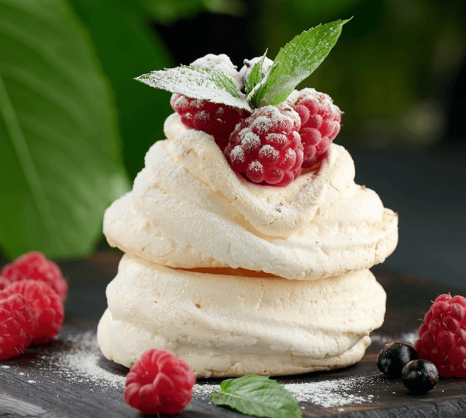 La intensa Pavlova: una nube dulce con carácter. Crujiente por fuera, suave y casi mousse por dentro. Decorada con frutas frescas que le aportan acidez y brillo. Es un cierre ligero, refrescante y de esos que dejan la sensación de “volvería solo por esto”.