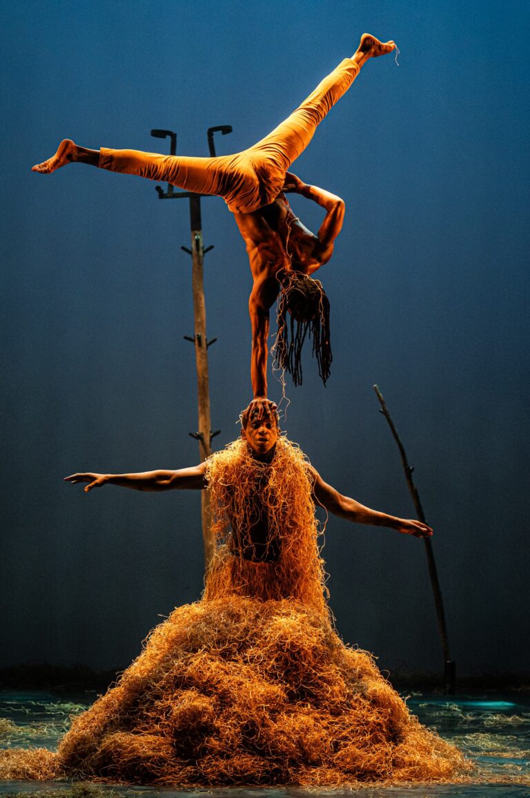 Inspirada en tradiciones y rituales de Senegal, la obra propone un retorno a las raíces y una búsqueda de identidad, donde el cuerpo se ancla al territorio para imaginar una nueva forma de coexistencia entre lo humano y lo natural.