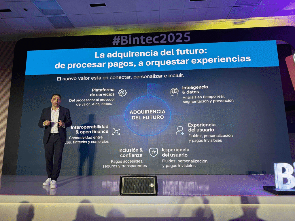 Otra de las charlas a resaltar fue la José Ignacio Núñez García de NTT Data “Pagos y Adquirencia, ¿hacia dónde vamos?” en la que habló de la manera de conectar a los clientes mediante el ofrecimiento de pagos fáciles, seguros y globales que impulsan la confianza y la fidelización, transformando la experiencia de pago en una ventaja competitiva. Comentó que Colombia está aumentando el uso de pagos digitales, con más de 40 millones de transacciones mensuales en billeteras, pero aún el 75% de transacciones se hacen en efectivo, por lo cual mencionó los retos que aún debemos superar: Infraestructura desigual, costos de adopción, educación y confianza y regulación más clara.