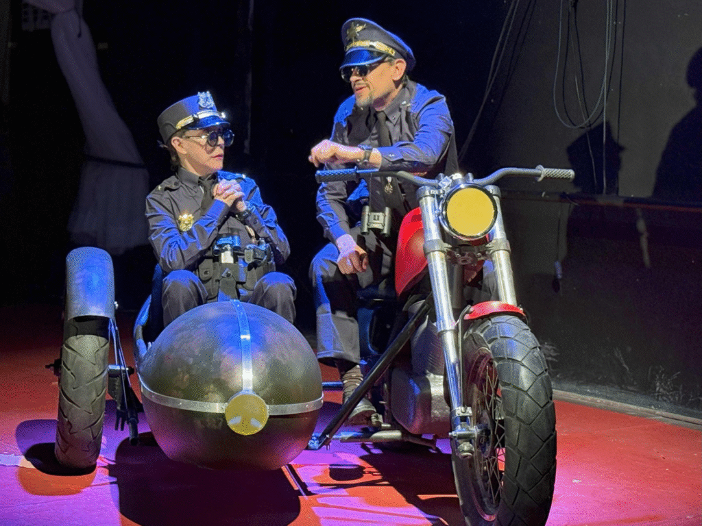 Complementando la narrativa, la puesta en escena se plantea como el único lugar donde lo imposible se vuelve posible. Por eso conviven en un mismo espacio autos a escala, disparos que nunca dan en el blanco, personajes que caen desde edificios y un barco que reaparece treinta años después de su naufragio, demostrando que el teatro no necesita imitar la realidad para ser verosímil, sino que crea sus propias reglas.