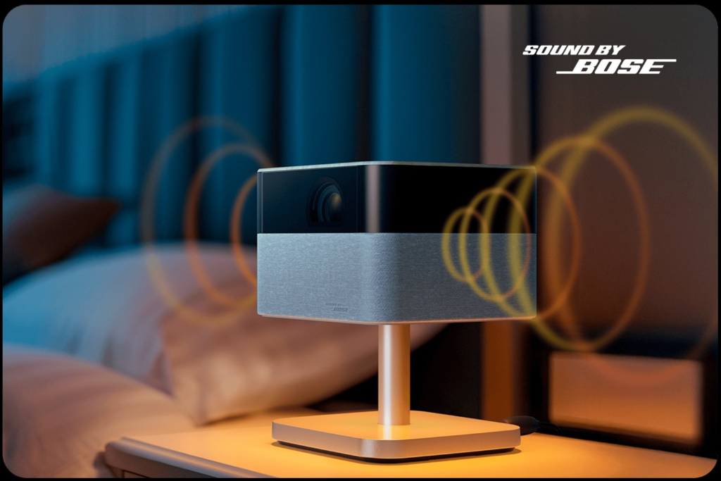 - Sonido inmersivo Sound by Bose: cada proyector cuenta con un sistema de audio integrado que ofrece un sonido potente y claro en toda la sala, sin necesidad de altavoces externos. Incluye cuatro modos de sonido especialmente calibrados que permiten a los usuarios elegir la configuración ideal para cada ocasión.