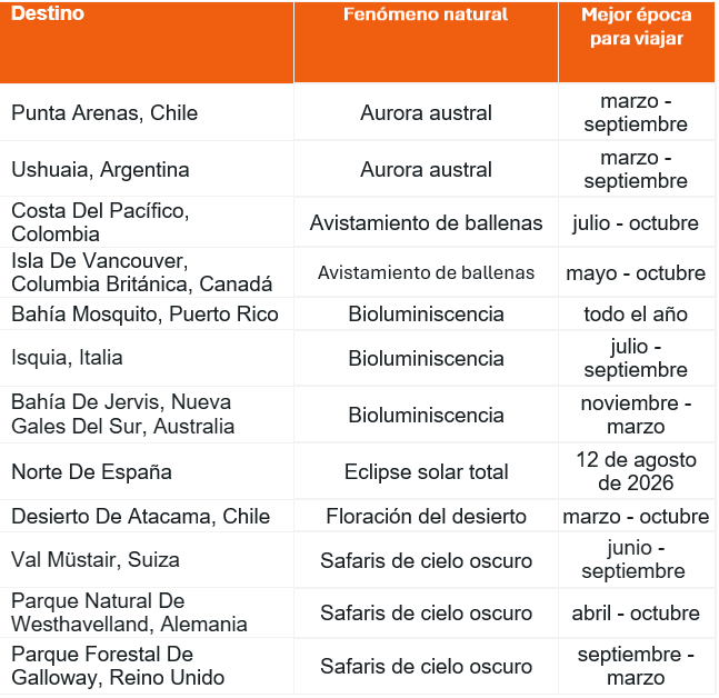 “Este año, el 60% de los viajeros priorizará las maravillas naturales al momento de planificar sus viajes. Este dato nos indica que los viajeros ya no solo buscan el destino por su oferta urbana, sino por fenómenos muy concretos que solo ocurren en ciertos rincones del planeta”, señaló Alejandro Lombana, Director Comercial de KAYAK para Colombia.