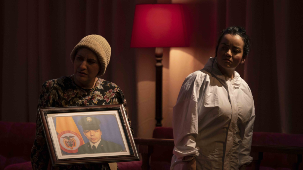 Por eso, en escena se cruzan distintos universos: una madre que busca saber dónde fueron enterrados sus hijos, presentados falsamente como guerrilleros; un militar que, tras haber participado en ejecuciones, intenta reparar a las víctimas y reconstruir su propia vida; la esposa de un hombre secuestrado por la guerrilla durante años, que se enfrenta cara a cara con quien retuvo a su marido; o una familia atravesada por los conflictos internos que genera un secuestro prolongado.