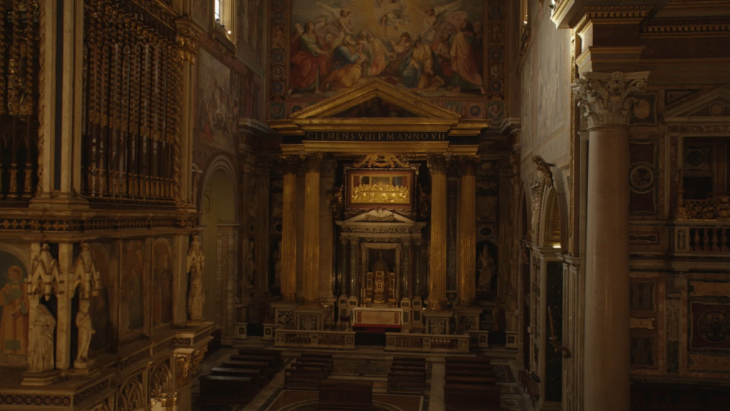 Catedrales majestuosas, antiguas reliquias, locaciones intemporales, santuarios sagrados, joyas arquitectónicas, esculturas y frescos de autores como Miguel Ángel, Bernini y Borromini, entre otros, conforman este viaje extraordinario, captado con la más alta tecnología y guiado por los textos de Paseos en Roma, de Stendhal (1783–1842), el célebre escritor francés que recorrió estas iglesias durante su viaje por Italia. Sus palabras, acompañadas por los acordes del órgano de San Juan de Letrán, uno de los más antiguos del mundo, preparan al espectador para sumergirse en el universo artístico y espiritual de estas cuatro monumentales edificaciones.