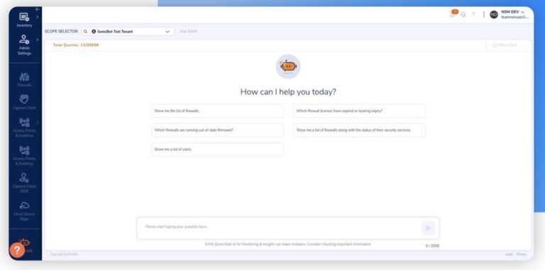 Integrado con SonicWall Unified Management, SAMI permite centralizar la gestión de la infraestructura de seguridad en un único punto, donde los administradores pueden visualizar alertas unificadas, analizar eventos y realizar consultas en lenguaje natural. De esta forma, es posible obtener rápidamente información clave, como identificar firewalls con firmware desactualizado o rastrear la actividad de un usuario comprometido dentro de la red.
