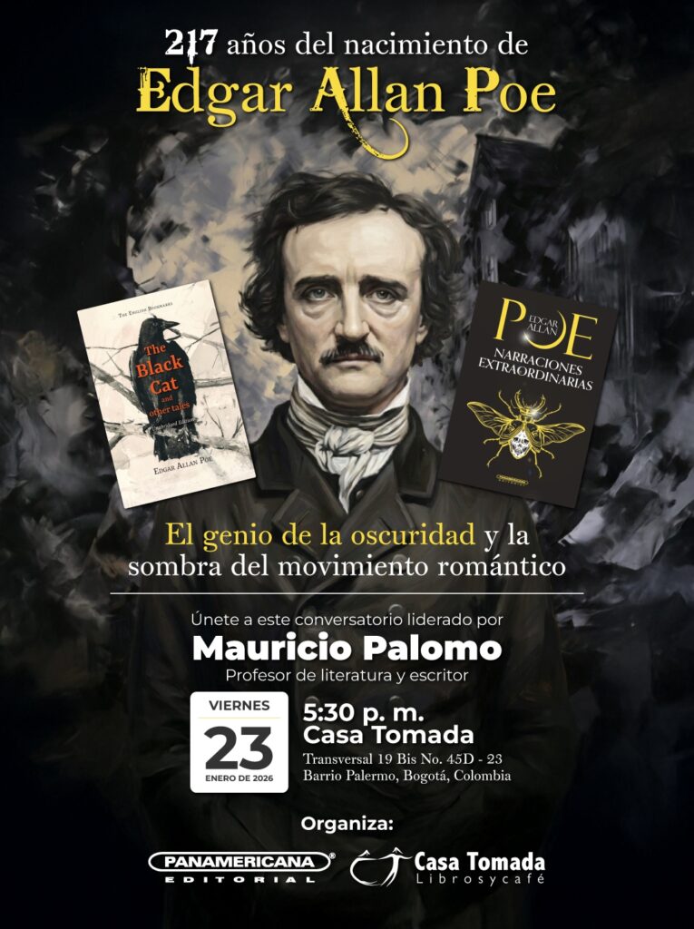 Como parte de la celebración de los 127 años del nacimiento del escritor estadounidense, Edgar Allan Poe, este 23 de enero, Panamericana Editorial y la librería Casa Tomada, realizarán el conversatorio con el profesor de literatura y escritor Mauricio Palomo, quien expondrá el fascinante recorrido a través de la vida y obra de Poe. Edgar […]